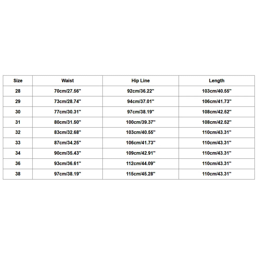 | Size:32 | Waist:84cm/33.07'' | Hip Line:103cm/40.55" | Length:101cm/39.76'' |
