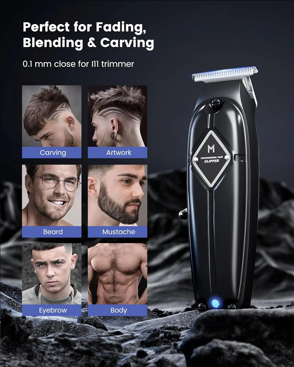 Designed for Hair ART CARVINThe clippers’ head is able to cut 0.1MM, professional standard for all-around outlining, dry-shaving and fading. |
