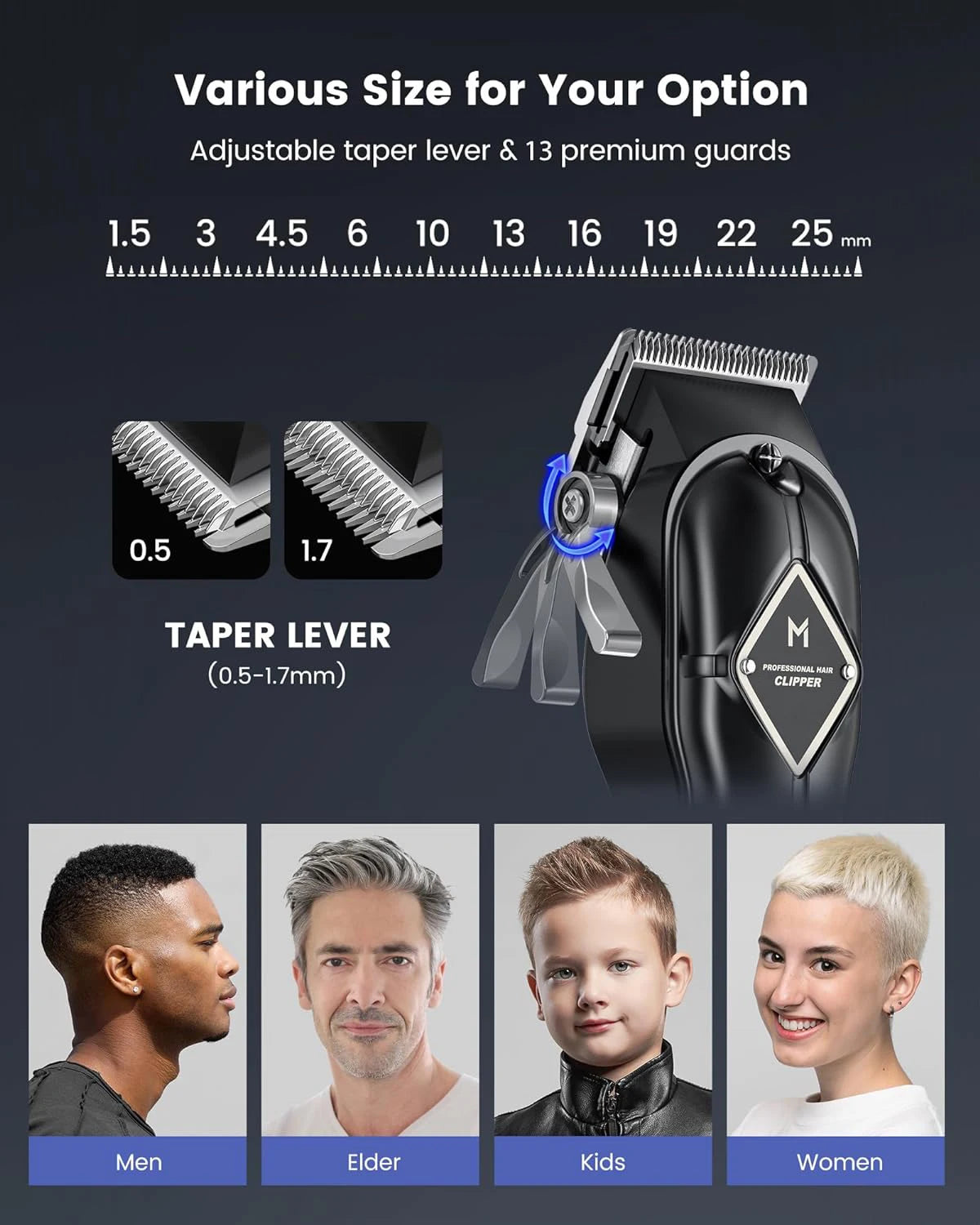 Idea Hair Clipper for WHOLE FAMILYEquiped with the upgraded motor,which is more powerful and lower shakiness, easy to hold and use. |