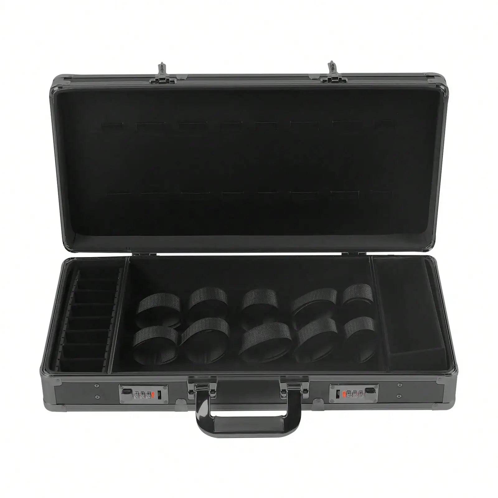 Our outstanding barber carrying case is an innovative accessory that will make any barber's job easier and more elegant. Featuring multiple compartments for storing most hairdressing items, it is designed for portability, display, and traveling, making it a great addition to any professional barber's tool library. The combination lock secures the contents and the compact(21.65*10.6*3.94 inches) design makes it easy to carry. With it, your hairdressing work will become more efficient