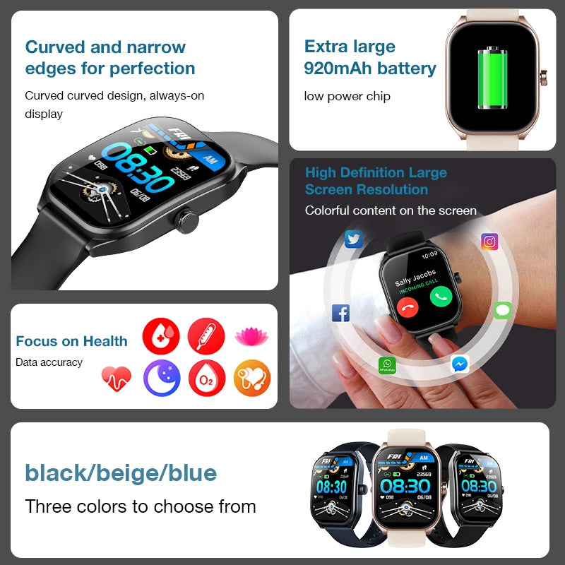 Aolon Global New 2.01" Curved Screen Smartwatch Men Call Sports Waterproof Wrist Watches Fitness Bracelet Women Watch Clock Smart Watch