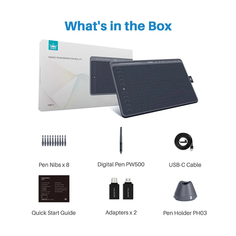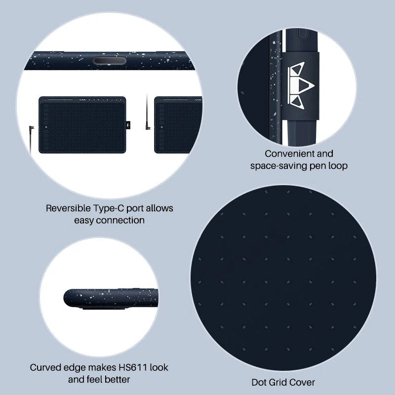 HUION HS611 Drawing Graphic Tablet For PC Android Digital Painting Tablets With 8192 Levels Pen Stylus USB Type-C Port For Phone