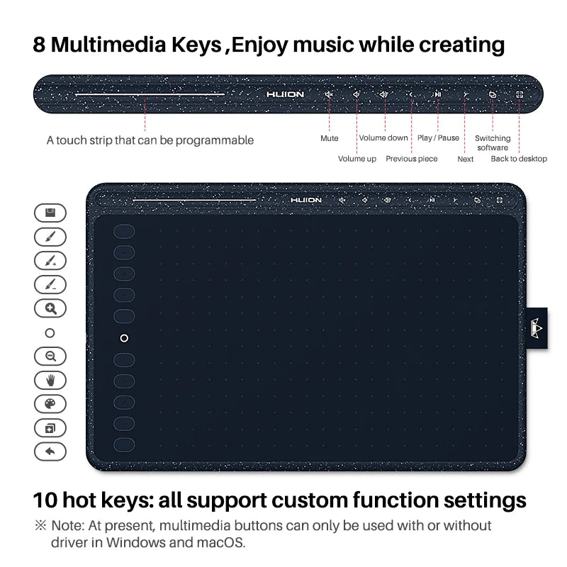 266 PPS report rate that supports rapid and smooth lines input enable every creative idea to be realized without lagging.