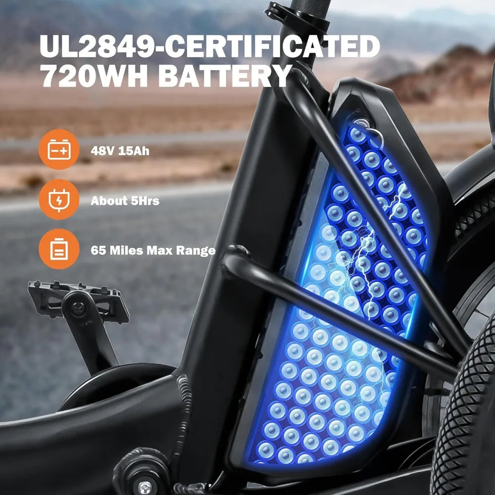 - Long-lasting and Portable Battery : Removable 720Wh (48V 15Ah) battery Trike provides extended ride times and convenient charging on the go.