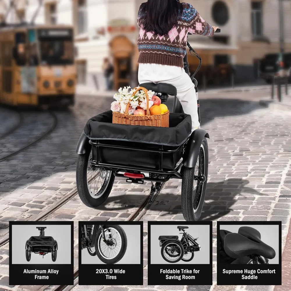 - Powerful and Quiet Operation : 500W high-speed brushless motor 3 Wheel Electric Bicycle with a sine wave controller ensures efficient performance with low noise levels.