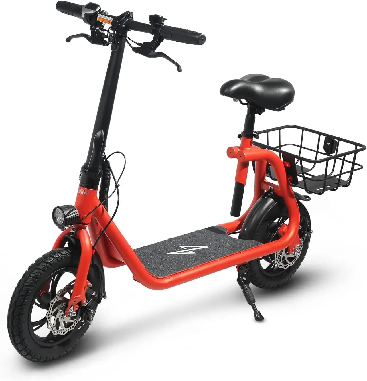 - ELECTRIC SCOOTER ACCESSORIES: E Scooter with 13 x 11 inch rear carry basket and scooter deck, front LED light and rear reflectors for safety, comes with toolkit