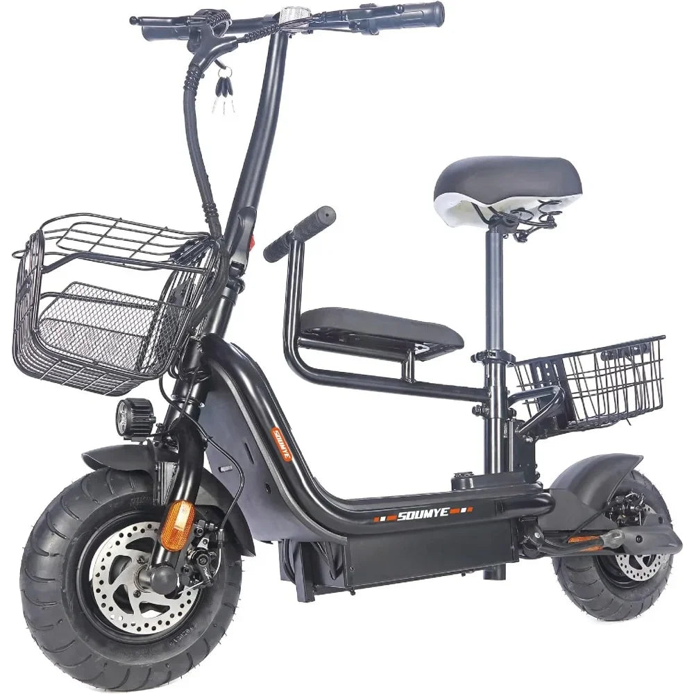 Our E Scooter uses 10" Vacuum Tires, which meets all your riding conditions. 500W Rear Hub motor allows you to easily reach a speed of up to 20MPH(32km/h). The Adjustable Suspension Shock absorber front fork and Dual disc brakes protect your safety during riding.