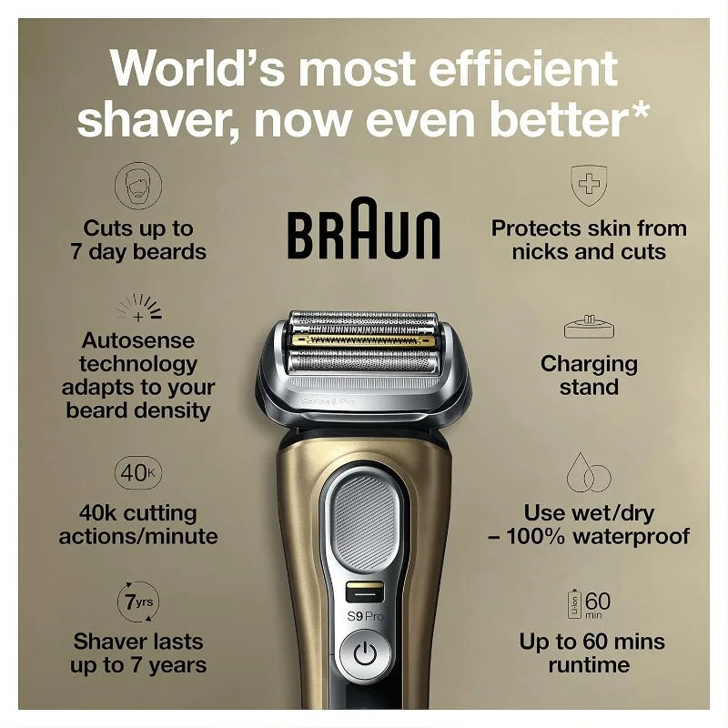 - BRAUN'S BEST RAZOR, NOW EVEN BETTER: NEW New Braun Series 9 Pro is the world's most efficient electric shaver*, now better with a flexible new ProHead that can cut 1, 3 or 7-day beards even in tricky areas.