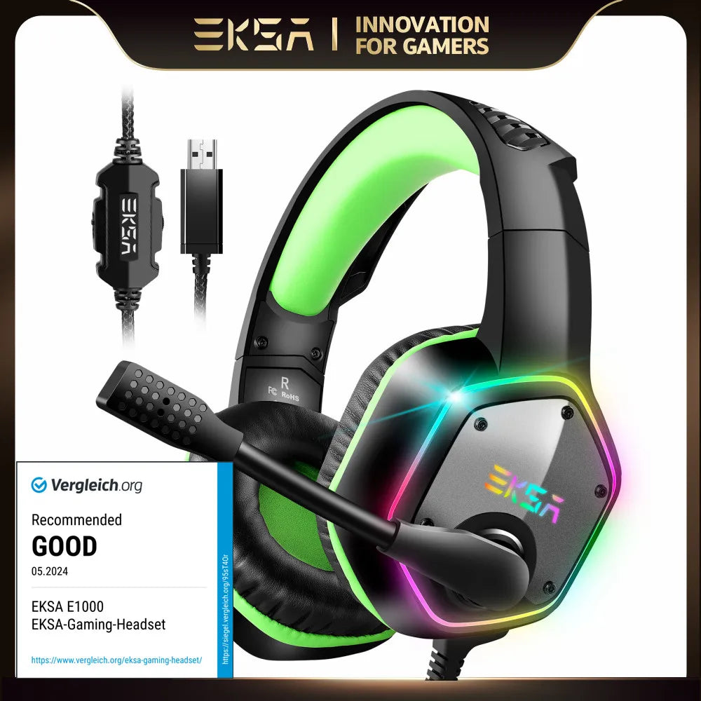 EKSA E1000 Gaming Headset 7.1 Surround Sound Wired Headset Gamer PC For PS4 with RGB Light Noise Cancelling Mic Gaming Headphone