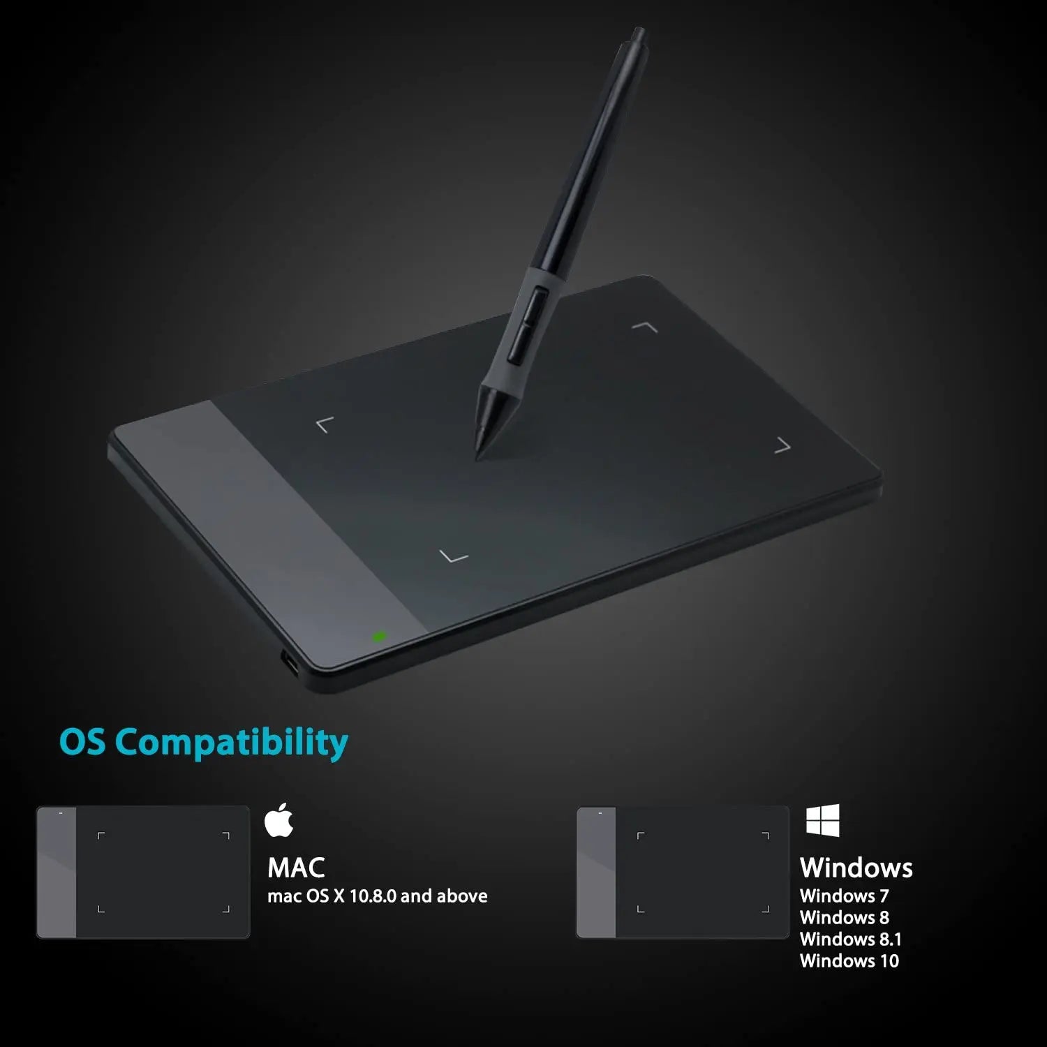 System requirements: USB port, Windows 7 or later, Mac OS 10.12 or later. Huion 420 drawing pad is compatible with most drawing software including Adobe Photoshop, paint tool sai, illustrator, corel draw, corel painter, sketchbook, manga studio, clip studio paint,and more. (Note :Huion 420 pen tablet does not support Android device, and is not compatible with Linux OS.)