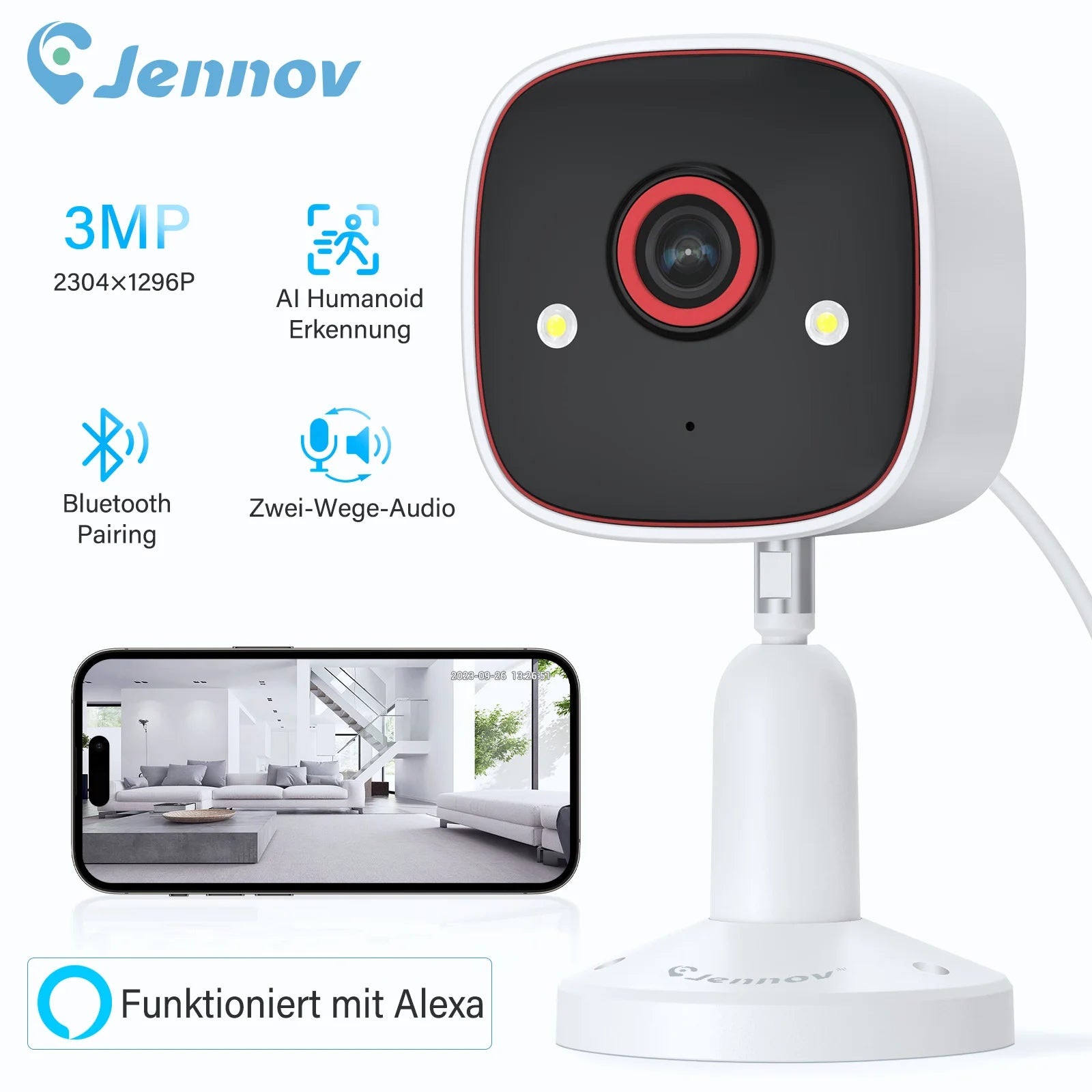 【Two-way Audio & Real Time Alert】This cameras for home security indoor built-in mic and speakers let you connect with family, baby, and pets two-way speak via the app, compatible with Alexa & PC & Mobile app to view the live video remotely and real-time alerts will be sent to your phone in case of suspicious activities to help you take timely action, siren, flashing white light or 2-way talk that both allow you drive away thieves and unwanted visitors.