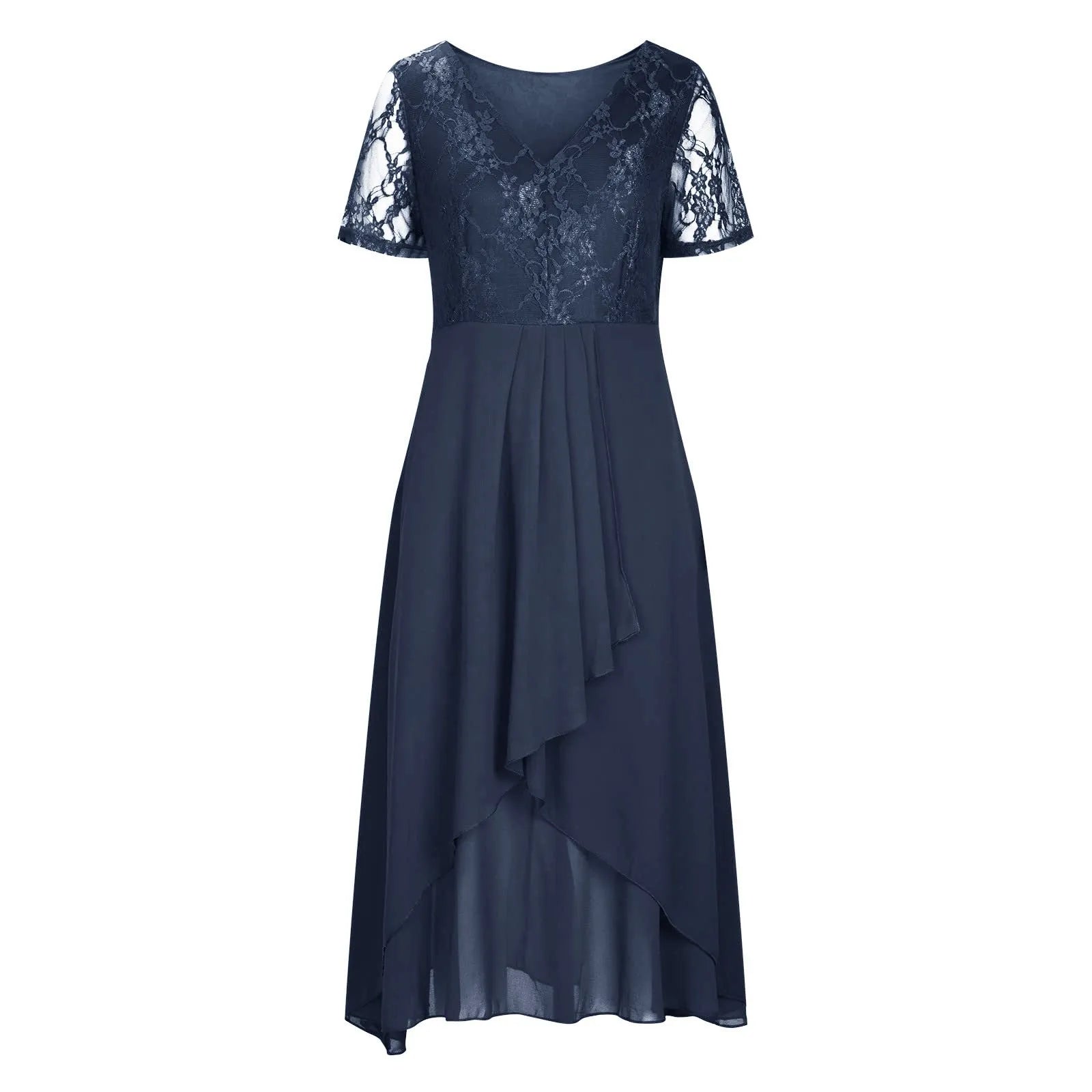 Women's Chiffon V Neck Splicing Lace Hollow Female Long Dress Bridesmaid Evening Dresses