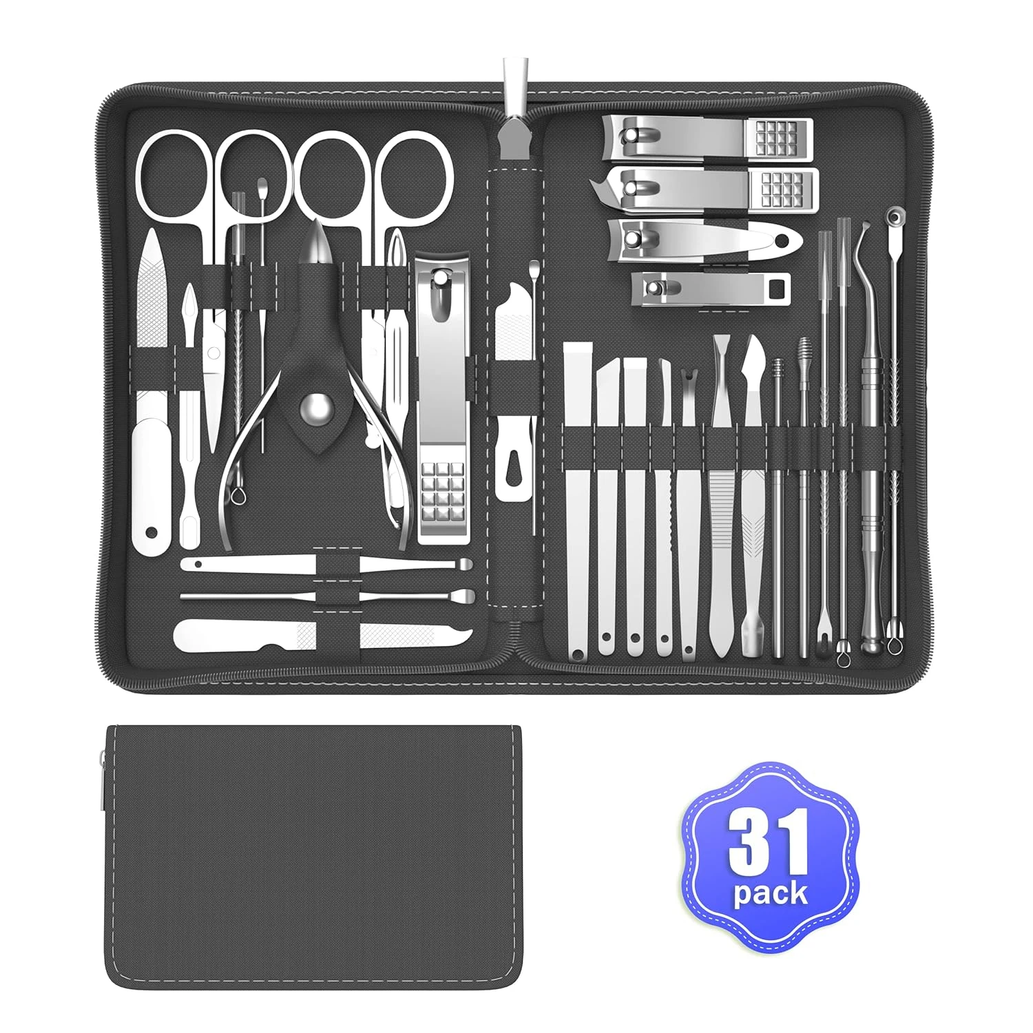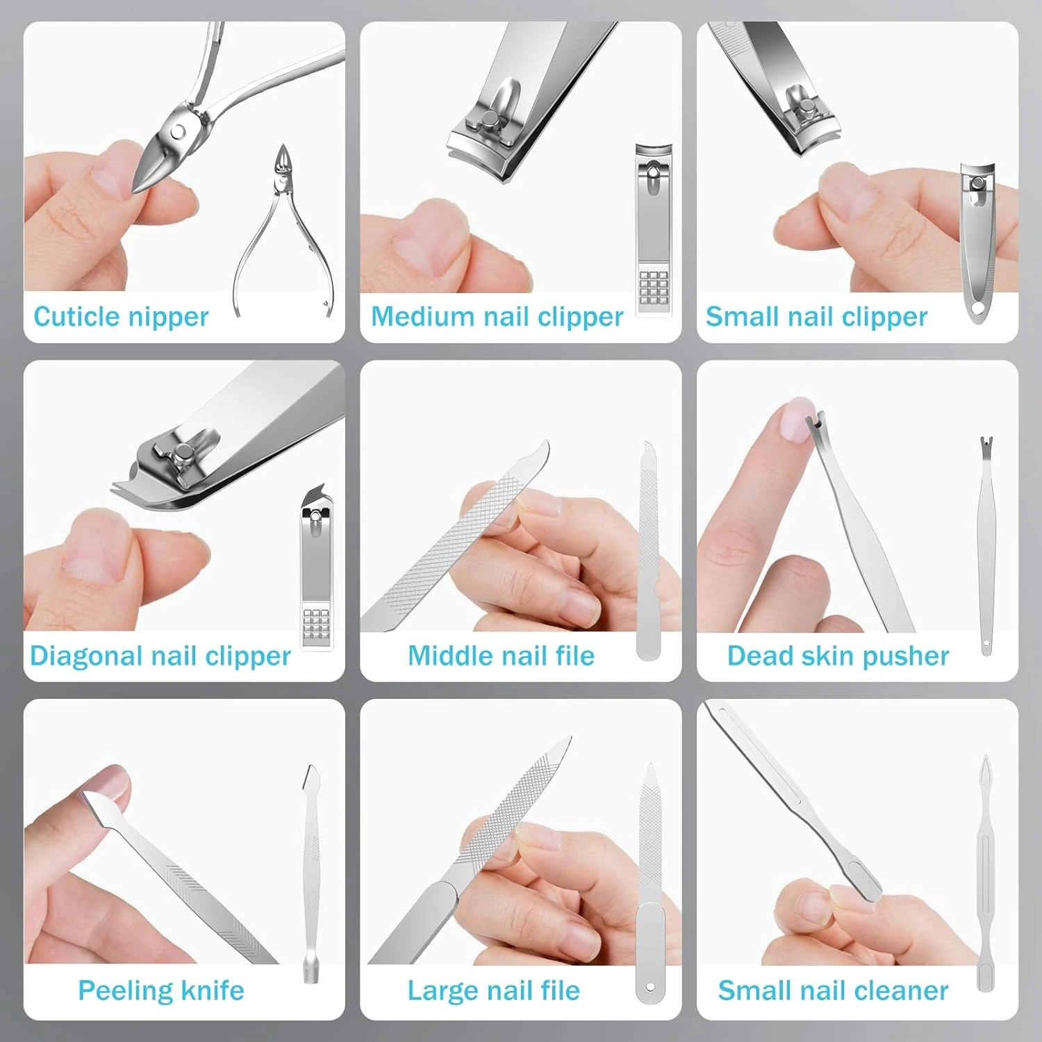 5. Elevate your grooming routine with our premium stainless steel manicure pedicure set. This high-quality kit, housed in a luxurious travel case, is perfect for men and women looking for durable solutions for perfect nails. Ideal for at-home or on-the-go use.