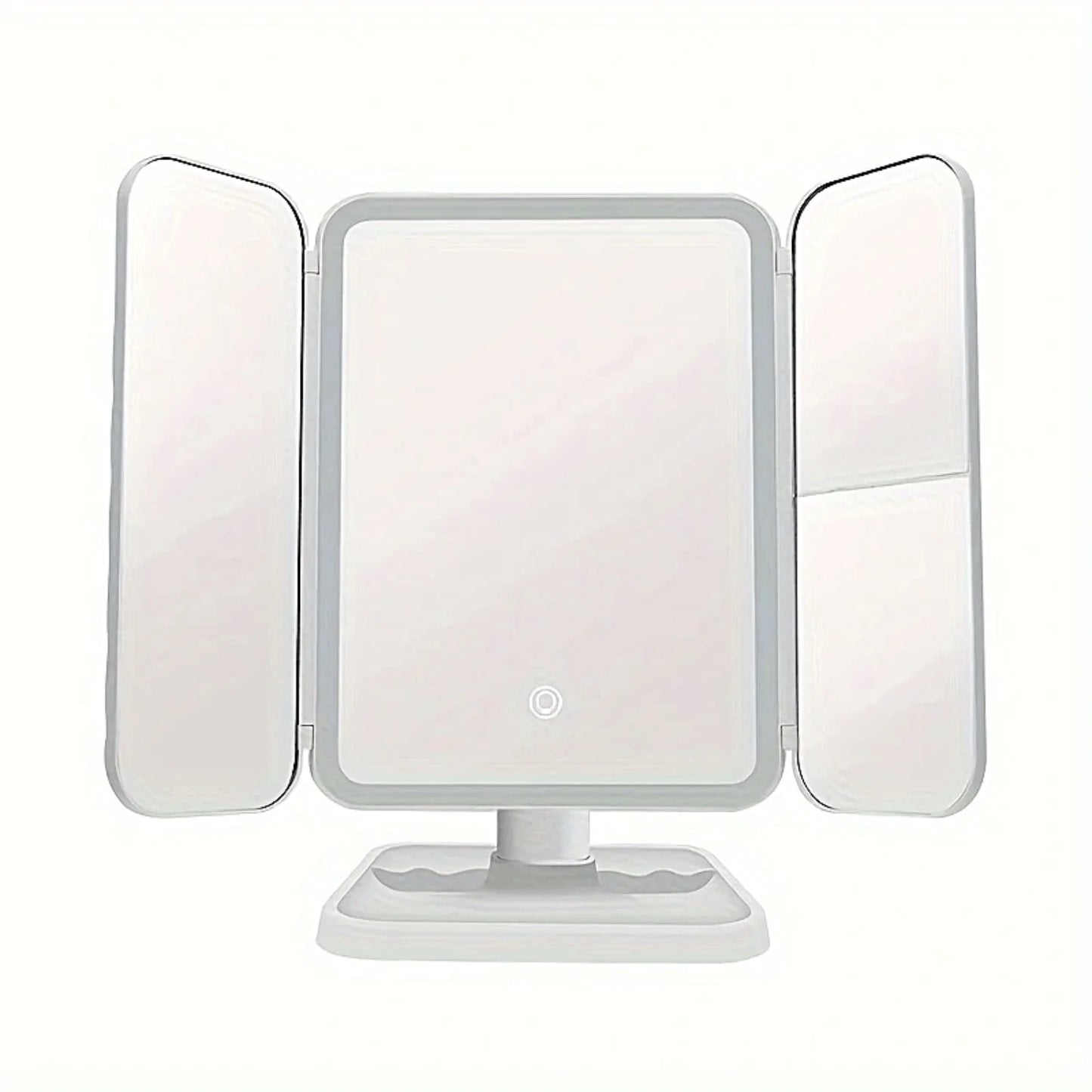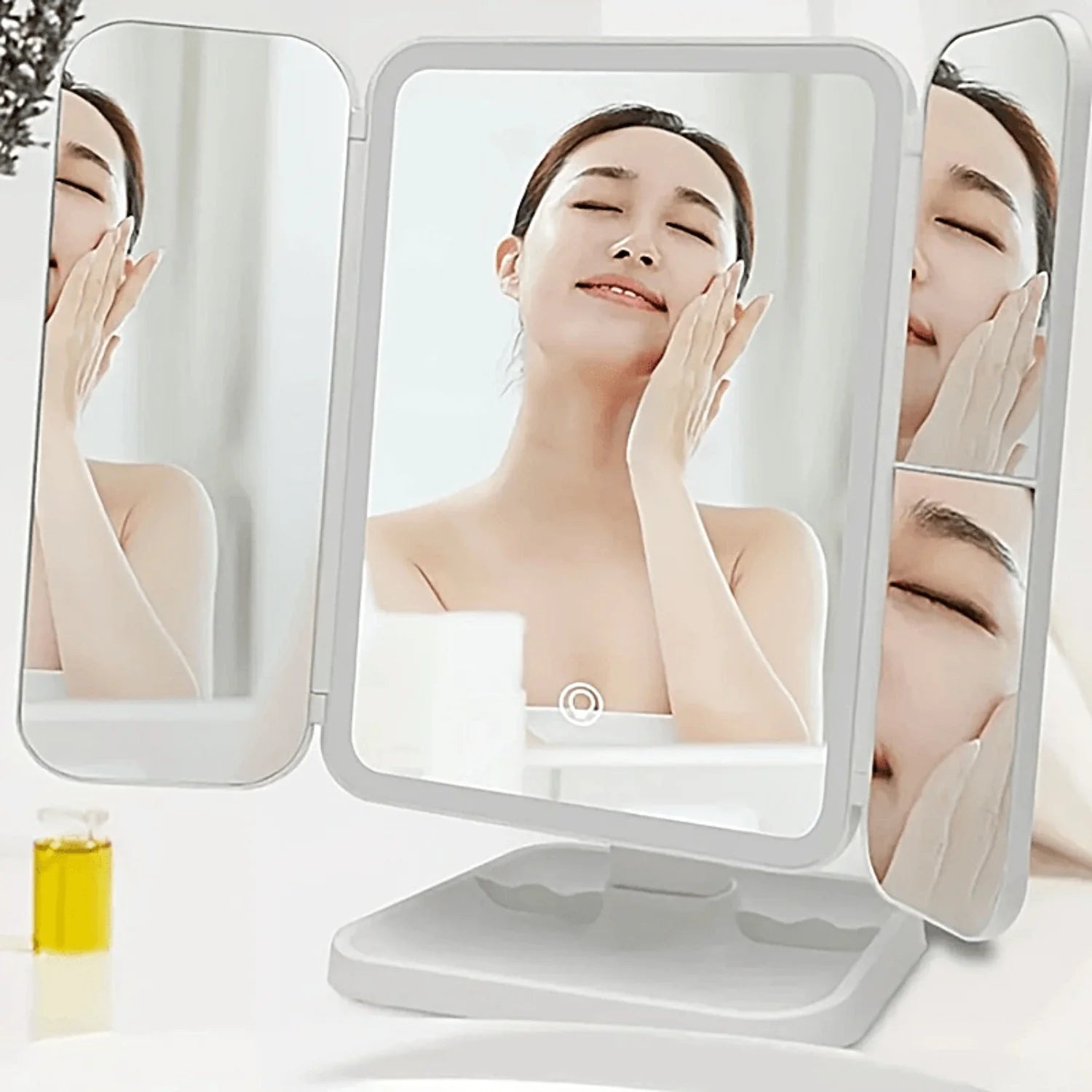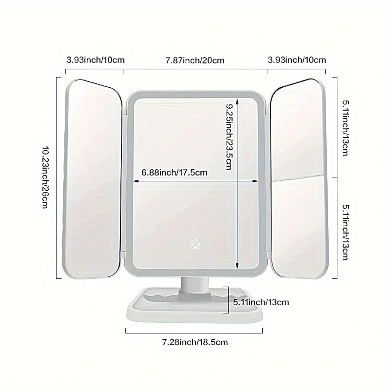 5. Elevate your beauty game with our Professional LED Makeup Mirror. This modern beauty essential features a tri-fold adjustable design, storage base, and 3 colors lights for perfect makeup application. With a sleek design and USB charging capabilities, this mirror is ideal for both at-home use and professional makeup artists.