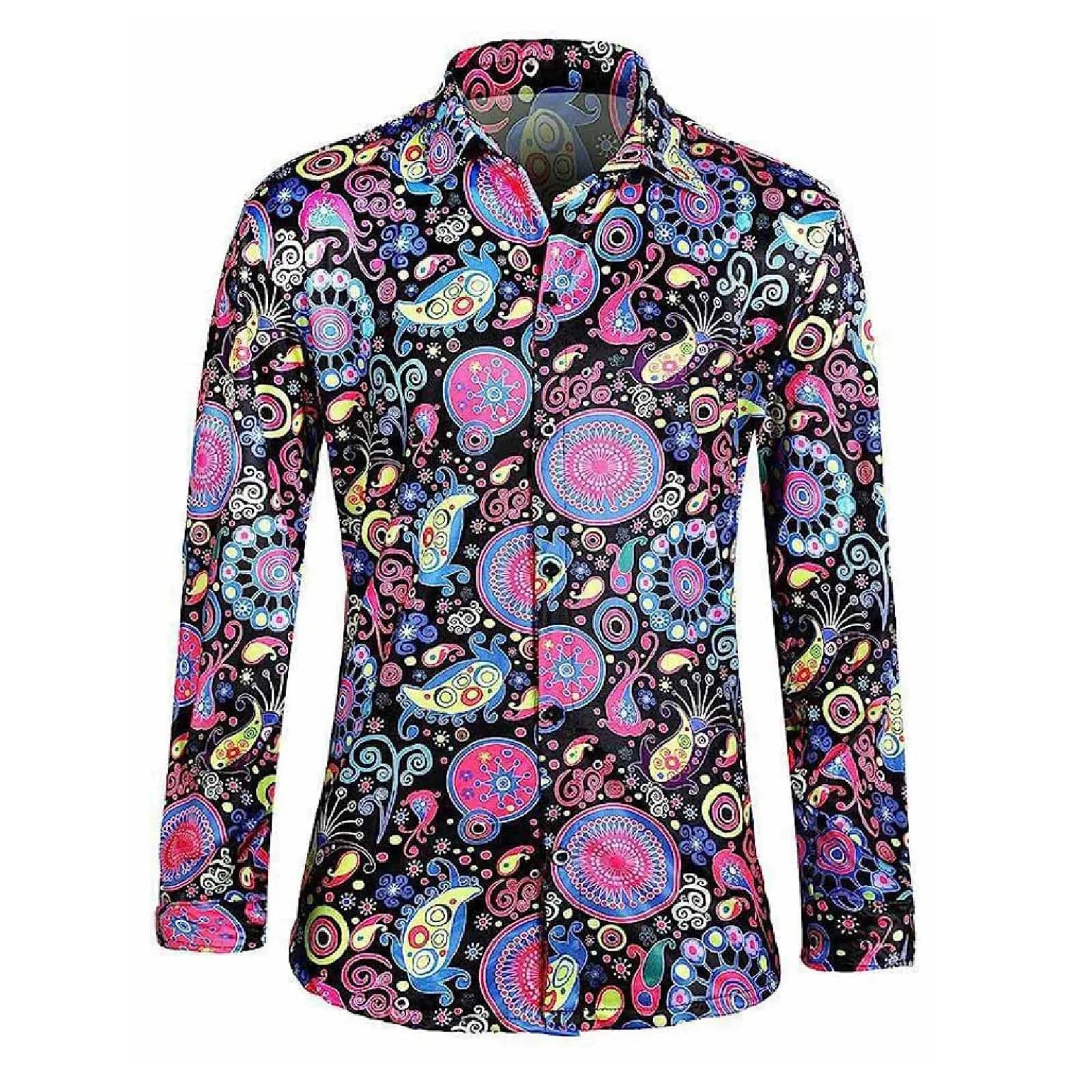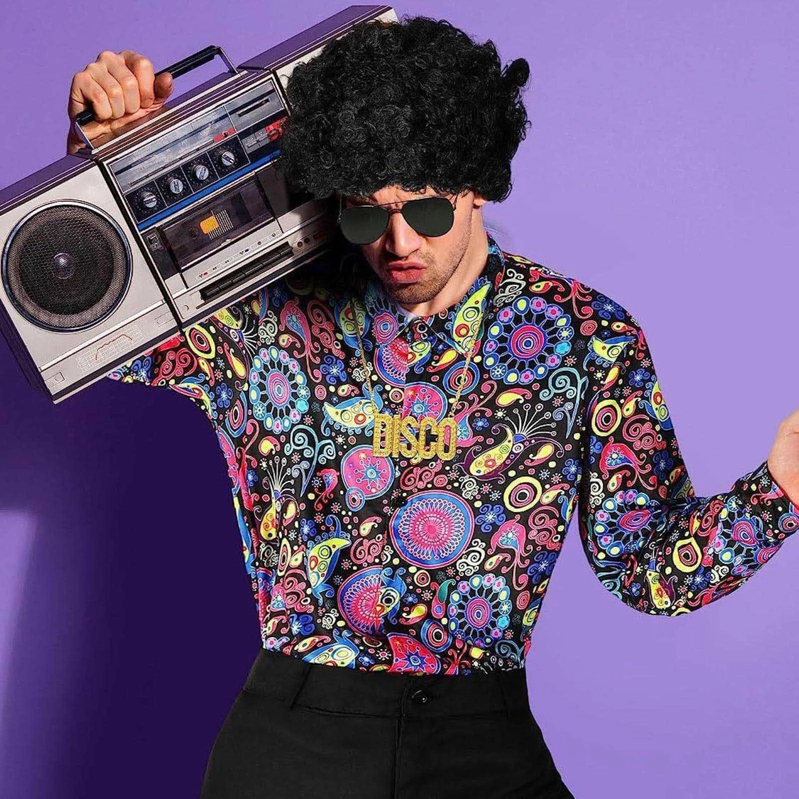Material Composition: Mens 70s Disco Outfit Retro Floral Shirt Flare Pants