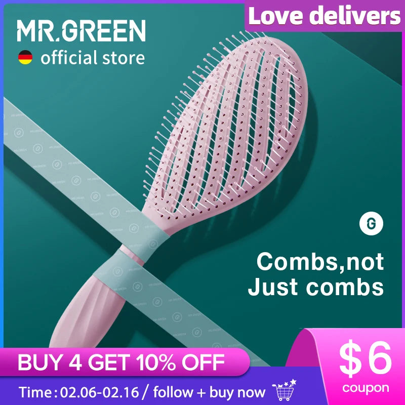 MR.GREEN Hollow Out Hair Brush Scalp Massage Combs Hair Styling Detangler.