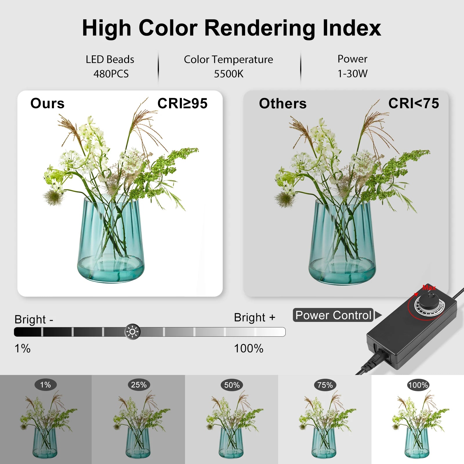 3.[High CRI]The display index of the light panel is CRI95, and the color rendering index (CRI) refers to the level of the light source's ability to restore the visual perception of the object to the sun. The higher the color rendering, the stronger the ability to restore the color of the object, and the easier it is to distinguish the color of the object with the naked eye.