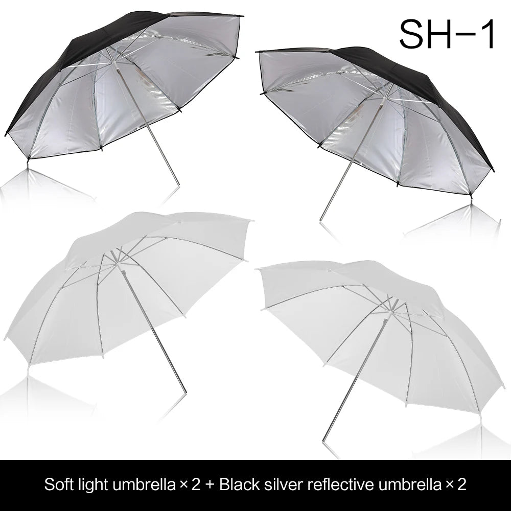 2*33 inch soft light umbrella + 2* 33 inch black silver reflective umbrella