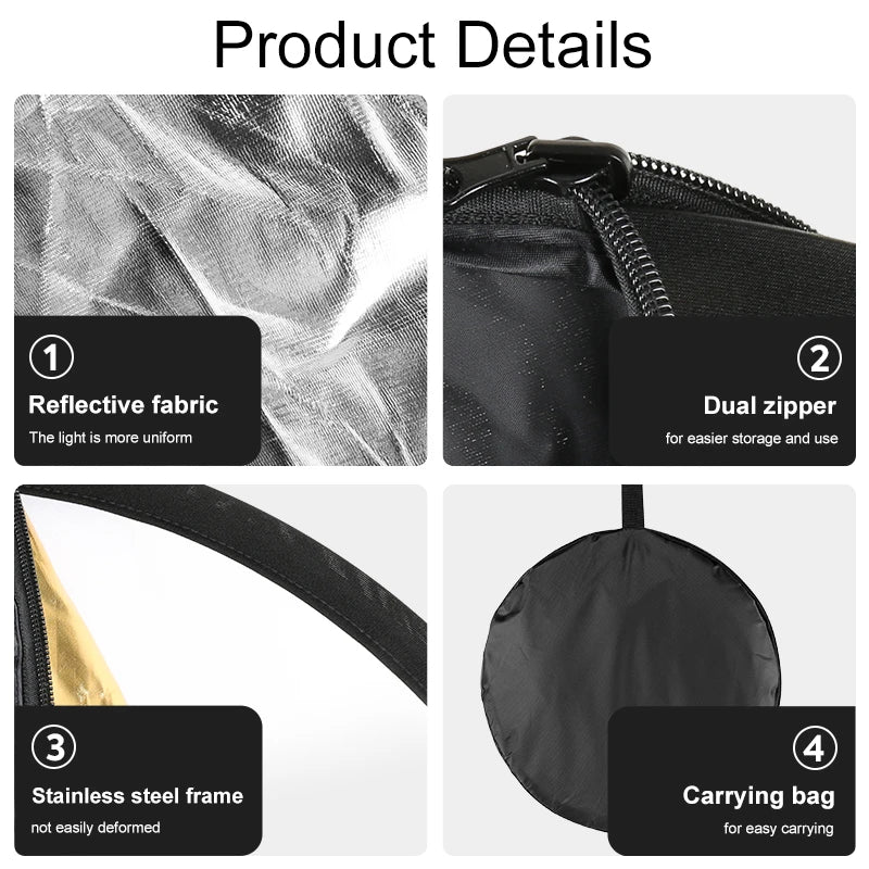 43 Inch/110cm Photography Light Reflector Collapsible Reflectors Kit With Clamp Metal Support For Photo Studio Lighting Shooting
