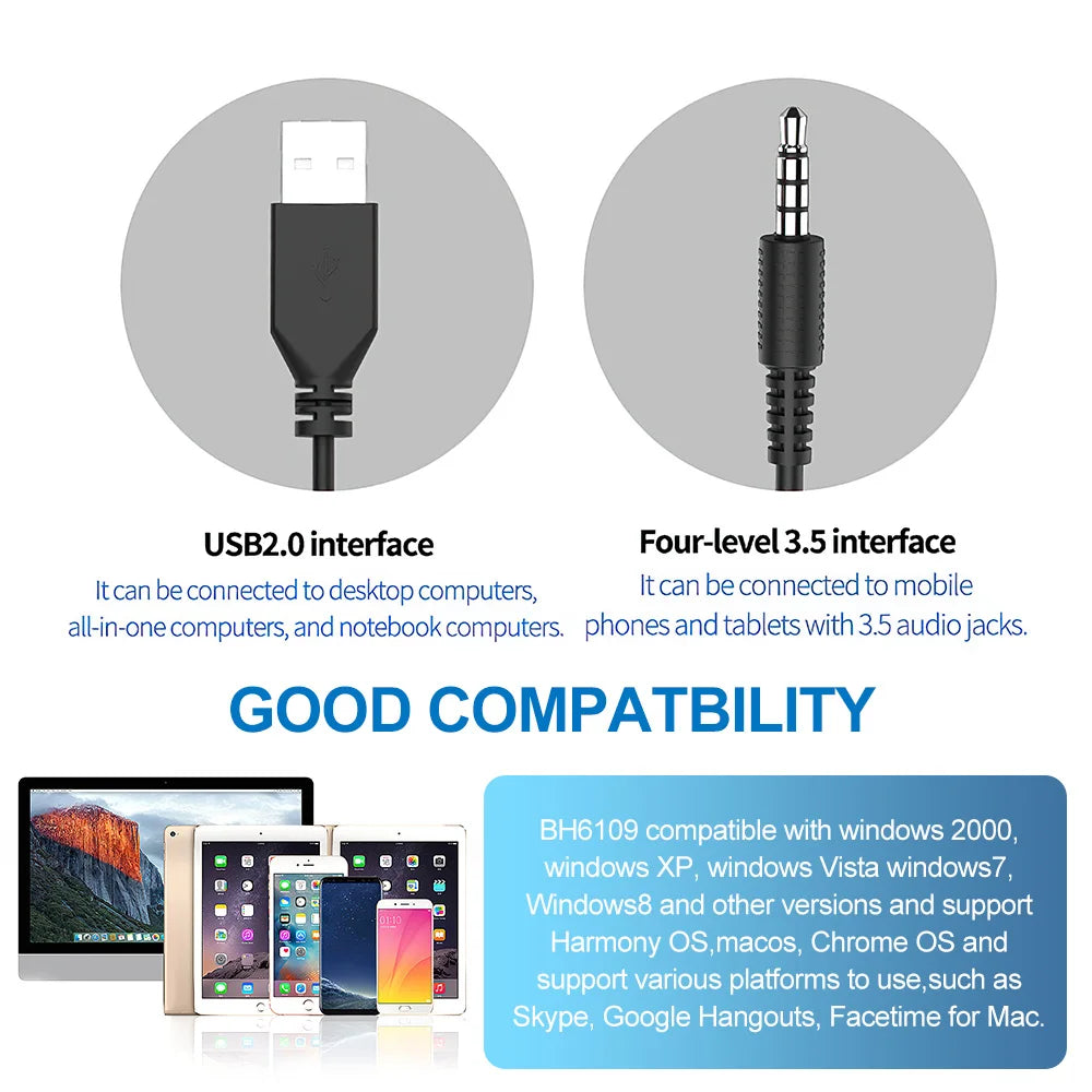 BH109 wired headset voice headset USB+3.5mm business call customer service headset