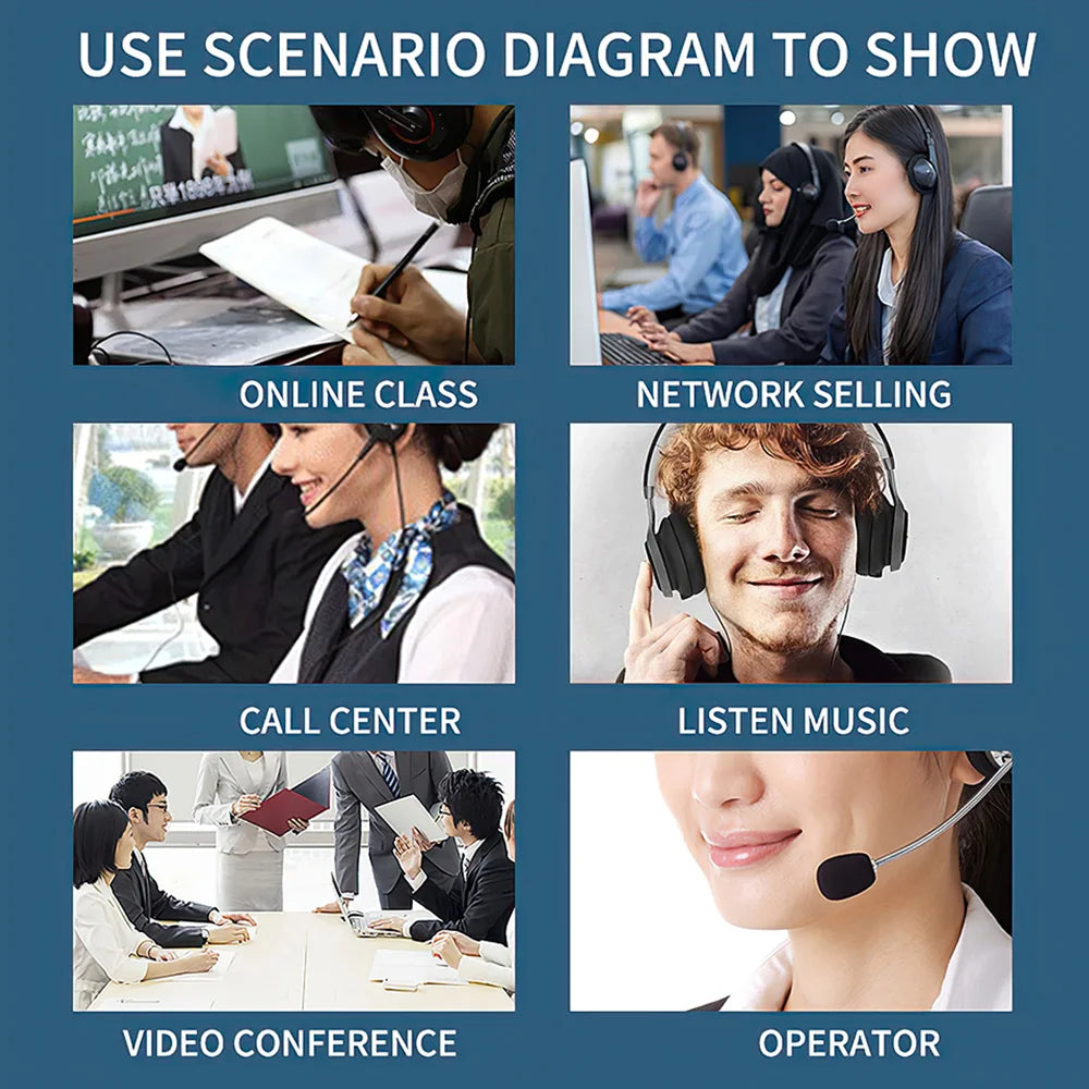 Plug Headphones Wired Call Center Headset.