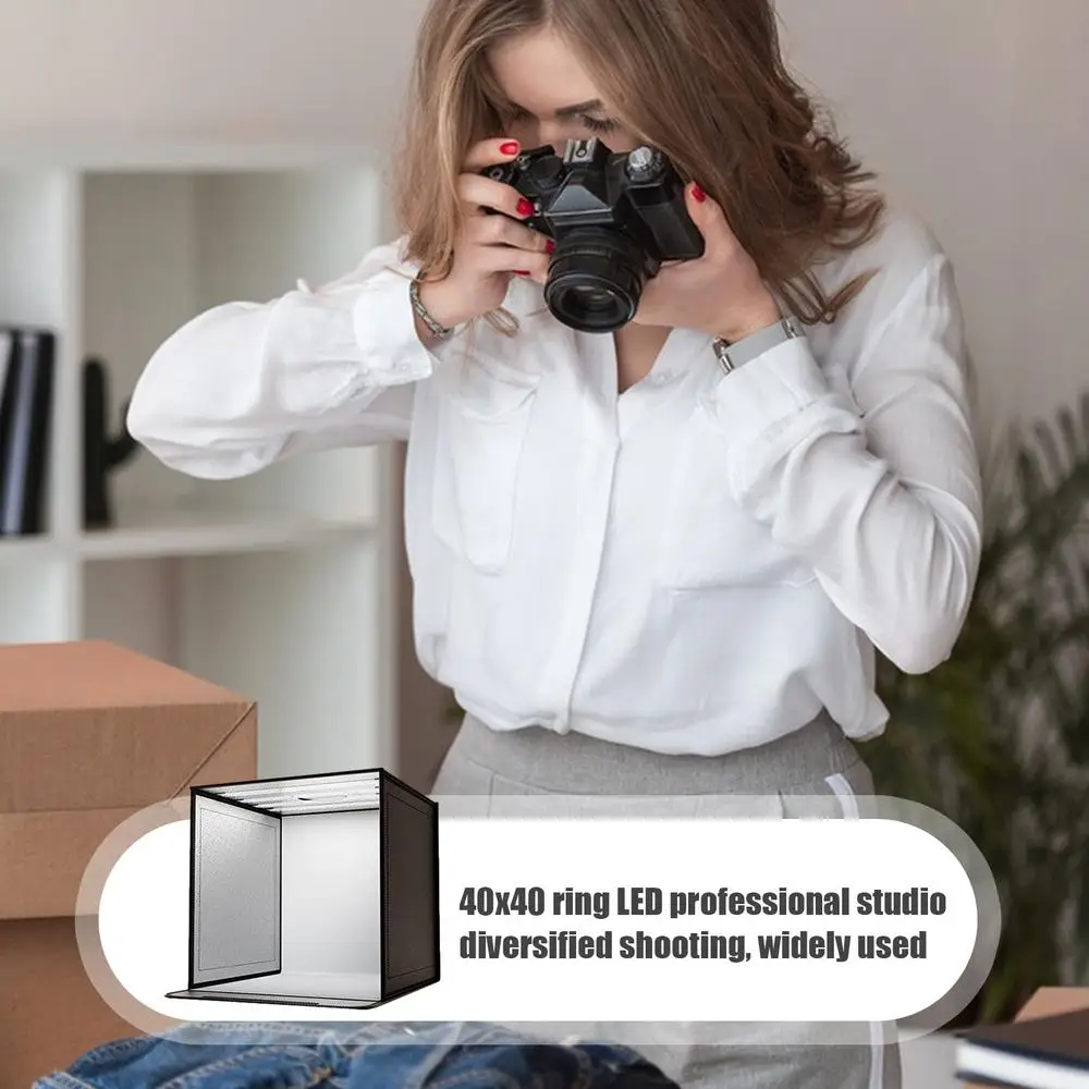 4.Ensured Portability: Never miss the perfect shot with this portable studio photo box. Its compact and lightweight design allows for easy carrying and space-saving storage. Taking professional photos anywhere has never been easier.