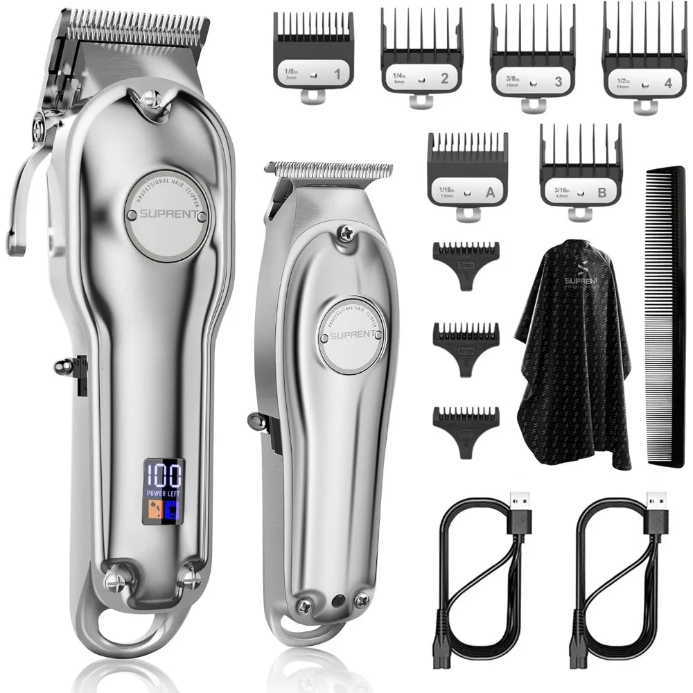 - LUXURY HAIR CLIPPERS SET CREATED FOR BARBERS - This professional hair cutting kit has been professionally tested to deliver the performance that experts demand. It is used in many barbershops all over the world. With 6 metal guards for hair clippers and 3 guards for detail trimmer, your creativity will not be limited. Note: The style of the hair cutting cape in the package is random.
