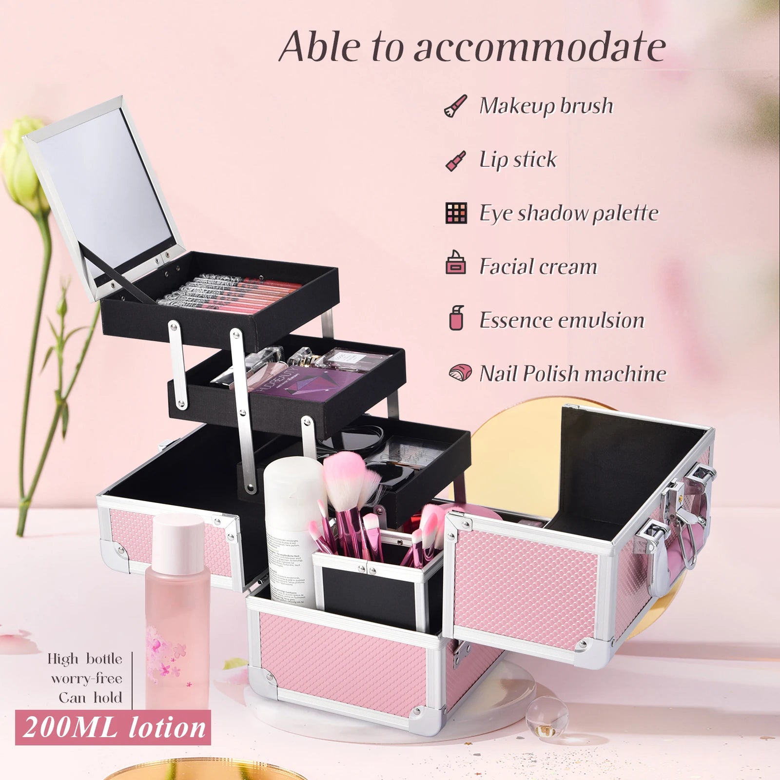 Aluminum alloy strip:The Professional makeup case is good quality, scratch resistant, easy to clean.Rigid body, shock and compression resistance, reduce impact, prevent cosmetics from crashing.