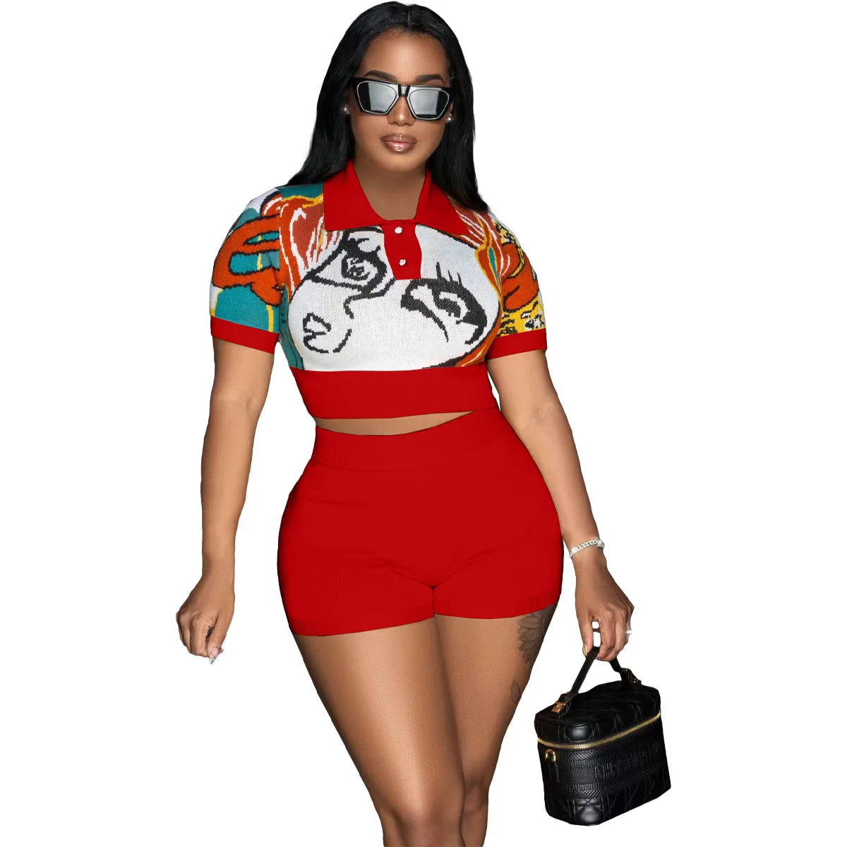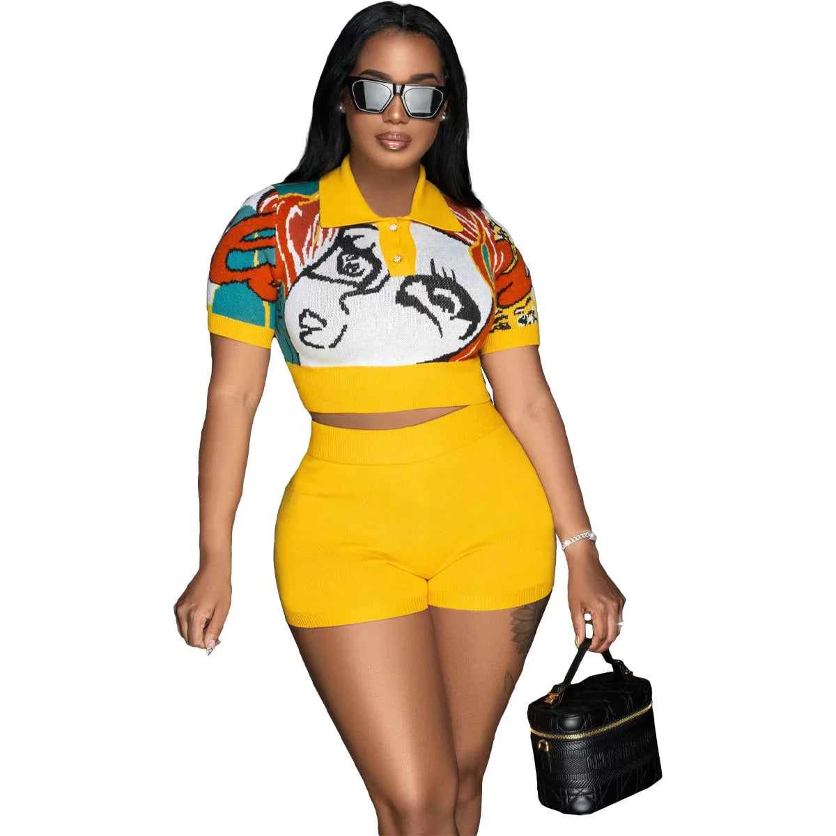 Prowow Fashion Two Piece Women's Suits Print Knitted .
