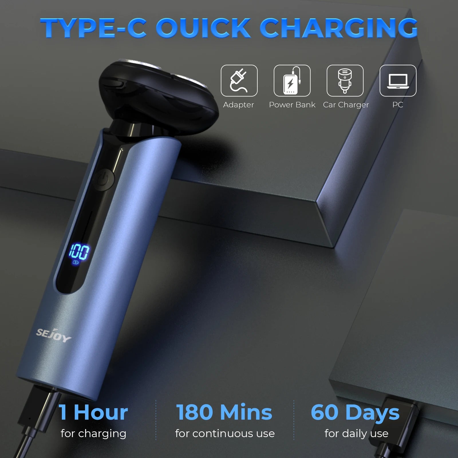 【1 Hour Fast Charging】 - This electric rotary shaver can be used cordless. A full charge takes only 1 hour and last more than 90 minutes ,it can use 60 days .Type-C charging make it convenience to recharge.
