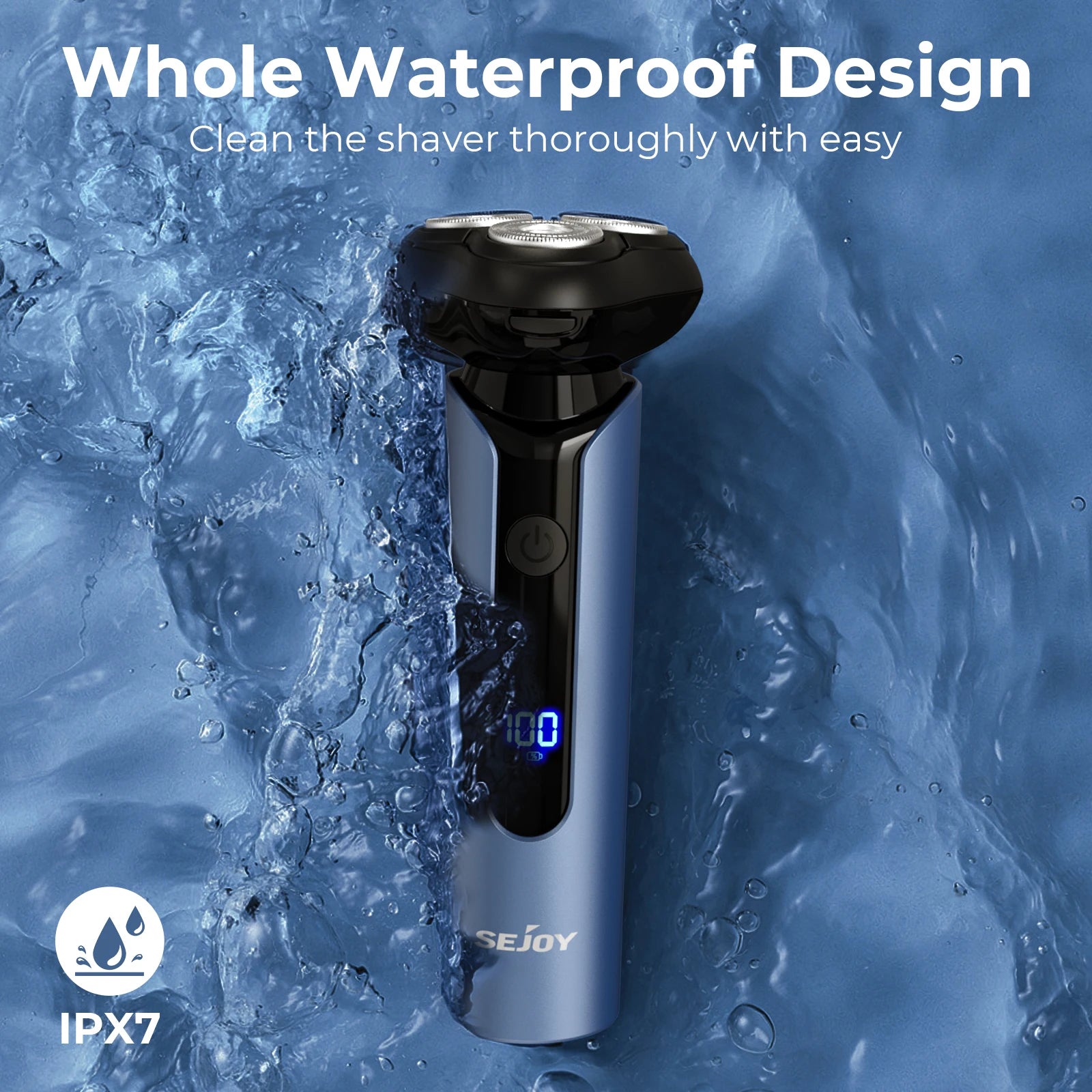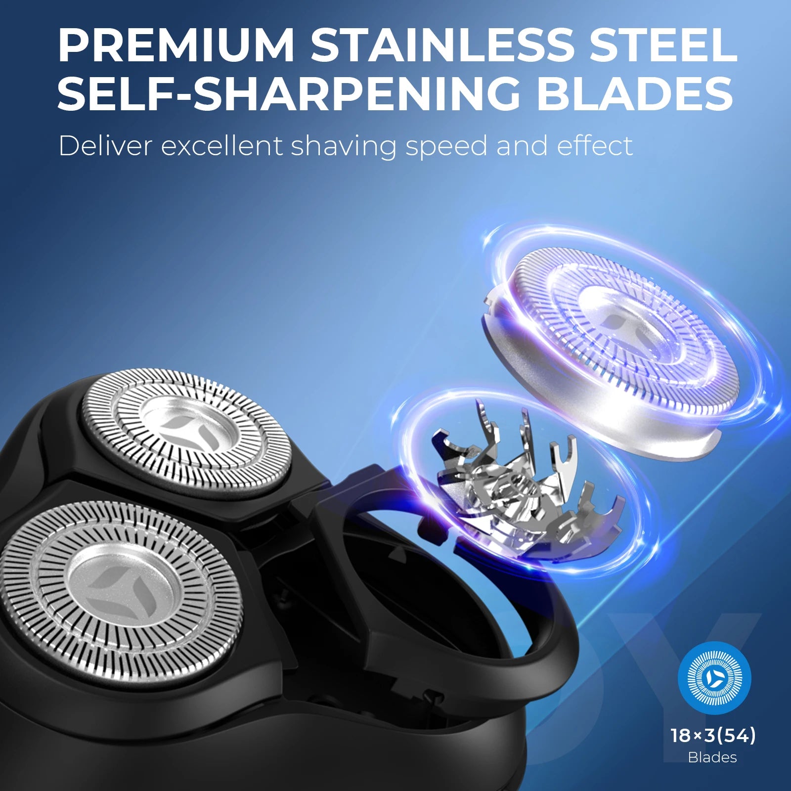 【Fast & Close Cutting】 - This electric razor for men is equipped with powerful motor and premium stainless steel shaving system, the 0.1mm thickness self-sharpening blades and double track design ensures excellent shaving speed and effect.