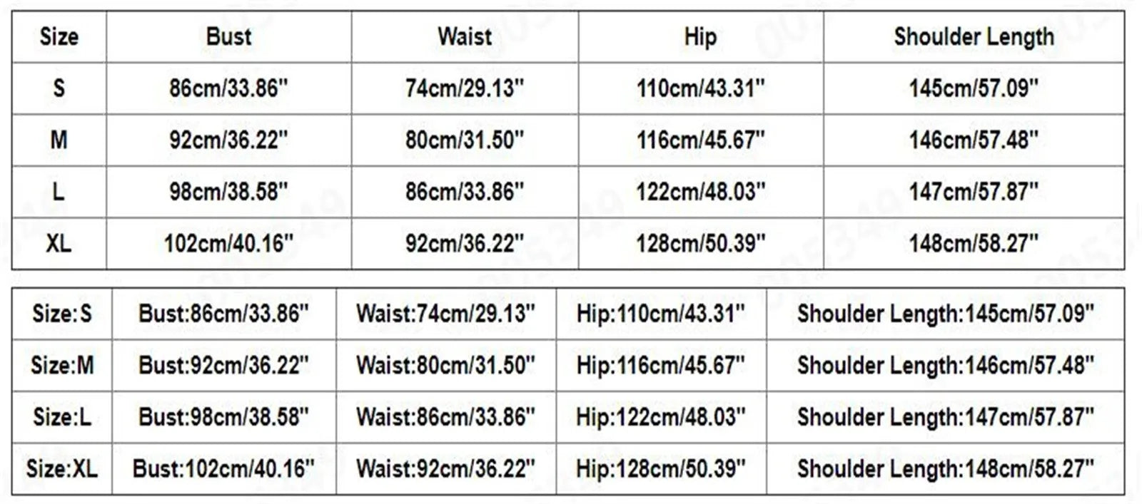 | Size | Bust | Waist | Hip | Shoulder Length |