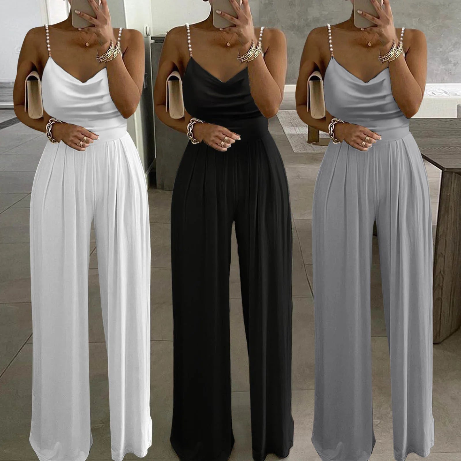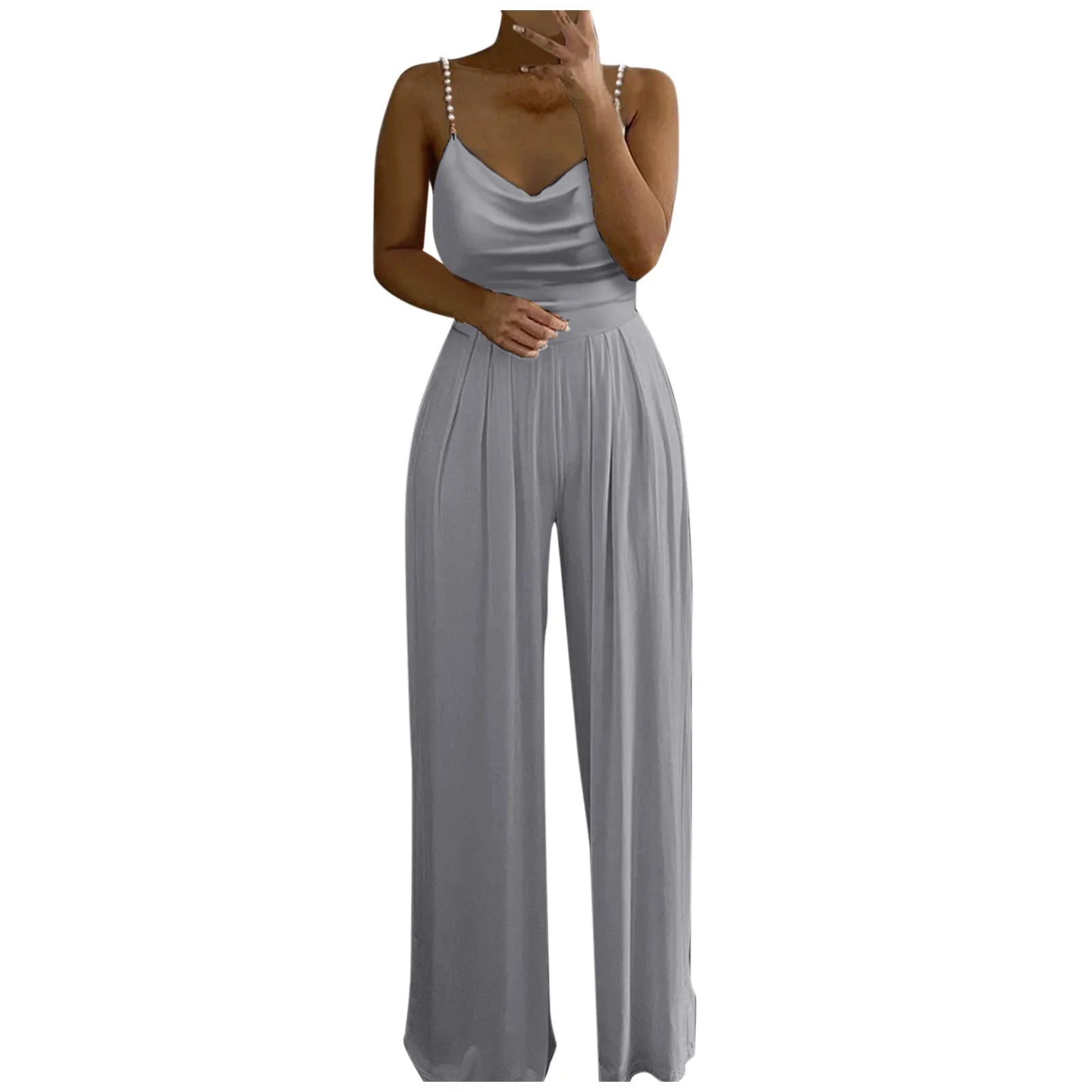 Women Sexy Printing Vest Top Splicing Wide Leg Pants Jumpsuit Rompers