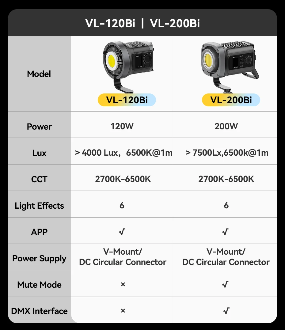 VL-120Bi /VL-200Bi Version (6 Light Effects) VL-120C RGB Version (20 Light Effects)