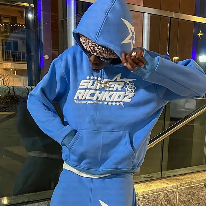 Y2K Aesthetics Retro Black Foam Print Pattern Hoodie 2000s Retro Grunge Goth Jacket Coat Gothic Set Clothing Sweatpants EMO